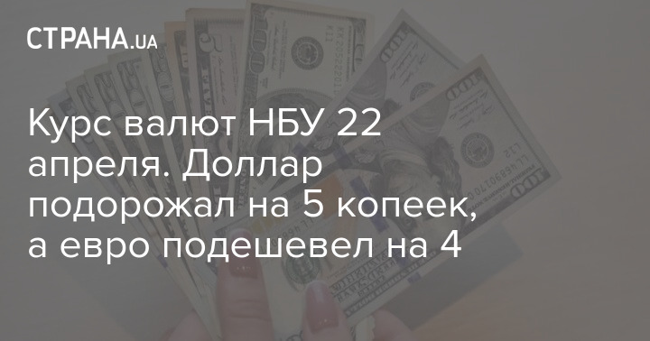 Курс валют НБУ 22 апреля. Доллар подорожал на 5 копеек, а евро подешевел на 4
