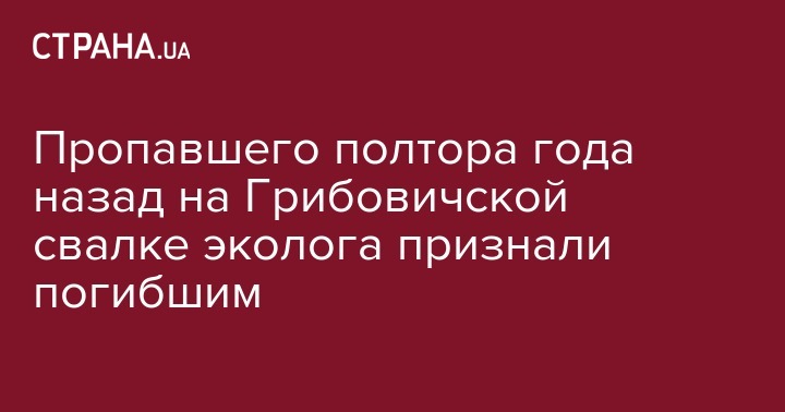 Пропавшего полтора года назад на Грибовичской свалке эколога признали погибшим
