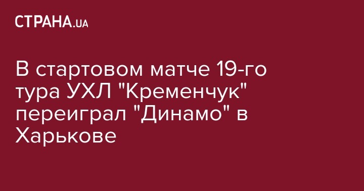 В стартовом матче 19-го тура УХЛ "Кременчук" переиграл "Динамо" в Харькове