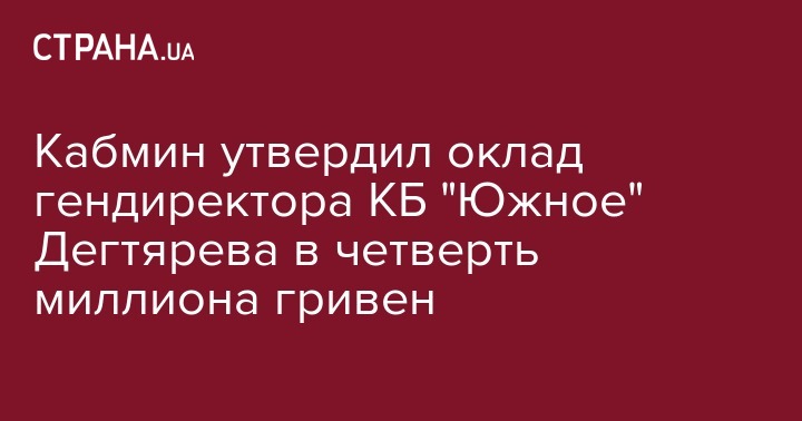 Кабмин утвердил оклад гендиректора КБ "Южное" Дегтярева в четверть миллиона гривен