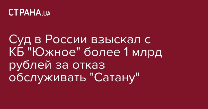 Суд в России взыскал с КБ "Южное" более 1 млрд рублей за отказ обслуживать "Сатану"