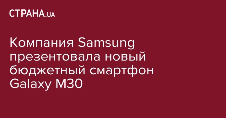 Южнокорейская группа компаний Samsung Group представила в Индии новый смартфон Galaxy M30, который возглавит семейство бюджетных смартфонов Galaxy M. Об этом сообщает itc.ua.