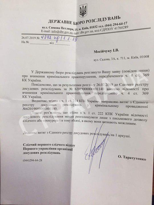 Как свидетельствуют документы, предоставленные Мосийчуком, дело открыто по ч.4 ст.369 УК (Предложение, обещание или предоставление неправомерной выгоды служебному лицу), наказание по которой предусматривает от 5 до 10 лет тюрьмы.
