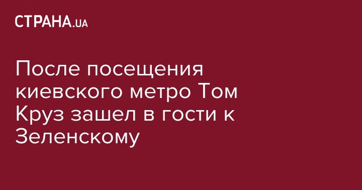 Американский актер Том Круз, которого вчера увидели в киевском метро, зашел в гости к Владимиру Зеленскому. Президент Украины сообщил, что пригласил его в Украину, чтобы показать интересные локации для съемок кино - "современные урбанистические пейзажи, старый город, остатки советского прошлого, тихие и уютные хутора, фантастические живописные пейзажи". Об этом сообщается на официальной странице президента в Facebook.