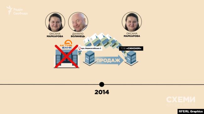 Незадолго до банкротства Маркарова и Волынец успели продать проблемный банк, а также его ценные активы. В том числе, дорогую недвижимость на Подоле в центре Киева. Покупателем выступила фирма "Синоним", собственницей которой, как выяснили "Схемы", была сама Маркарова.