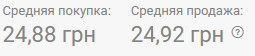 В обед средняя покупка была 24,85 грн, средняя продажа 25,15 грн.