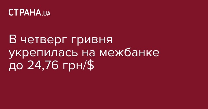 В четверг гривня укрепилась на межбанке до 24,76 грн/$