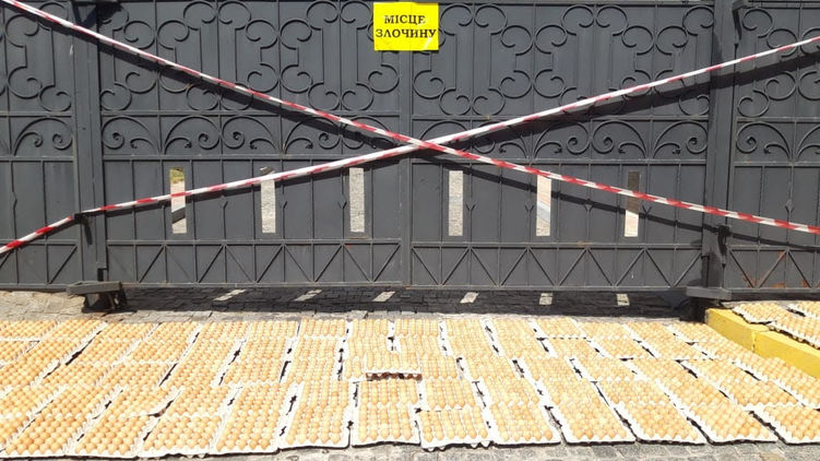 Организаторы акции, у входа в САП разложили яйца, как символ того, что прокуроры должны быть с яйцами и выполнять нормы закона и решения судов.