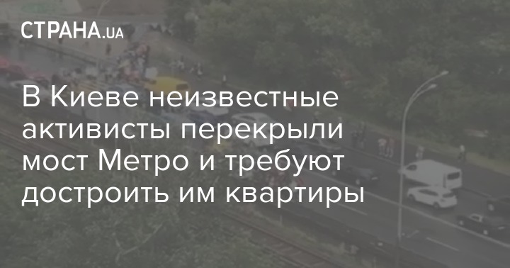 В Киеве неизвестные активисты перекрыли мост Метро и требуют достроить им квартиры