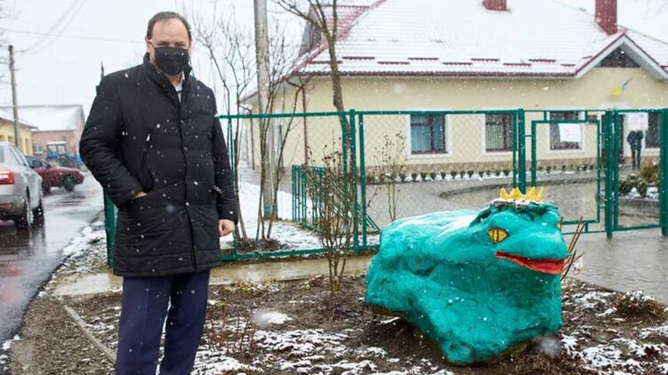 Мэр Ивано-Франковска Руслан Марцинкив открыл памятник "украинской жабе" около детского сада в селе Хриплин.
