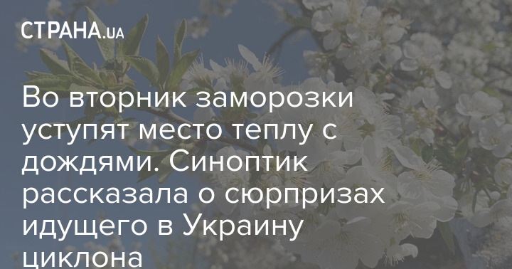 Во вторник заморозки уступят место теплу с дождями. Синоптик рассказала о сюрпризах идущего в Украину циклона