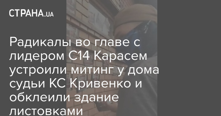 Радикалы во главе с лидером С14 Карасем устроили митинг у дома судьи КС Кривенко и обклеили здание листовками