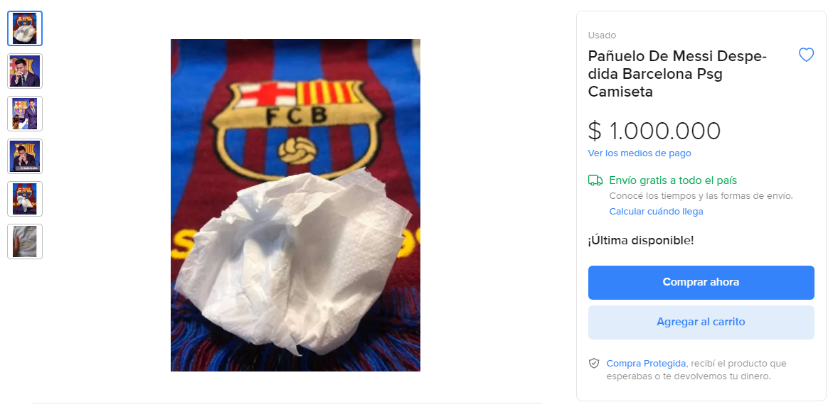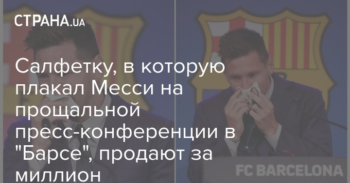 Аргентинская компания Mercado Libre, которая управляет онлайн-торговыми площадками, выставила на аукцион салфетку, в которую плакал Лионель Месси на пресс-конференции, посвященной прощанию с "Барселоной".