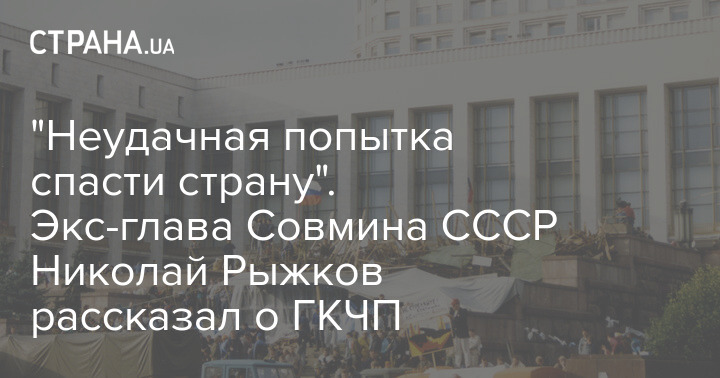 "На мой взгляд, члены ГКЧП думали спасти страну, но очень неудачно думали. Если они хотели спасти страну, нужно было подумать как следует, а не просто собраться", - прокомментировал экс-глава Совмина СССР Николай Рыжков.