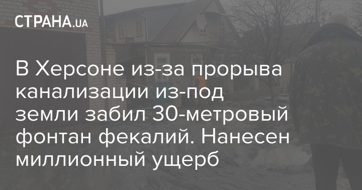 На прошедших выходных в Херсоне произошла авария на напорном канализационном трубопроводе, в результате из-под земли бил фонтан нечистот высоток 30 метров. Пострадали жилые дома.