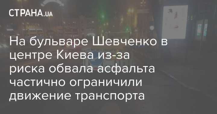 На бульваре Шевченко в центре Киева из-за риска обвала асфальта частично ограничили движение транспорта