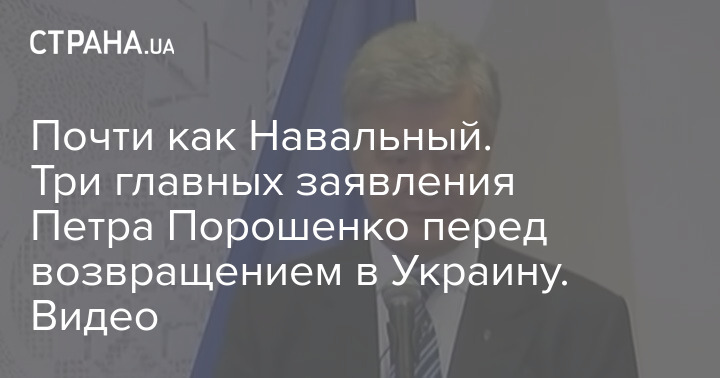 Почти как Навальный. Три главных заявления Петра Порошенко перед возвращением в Украину. Видео