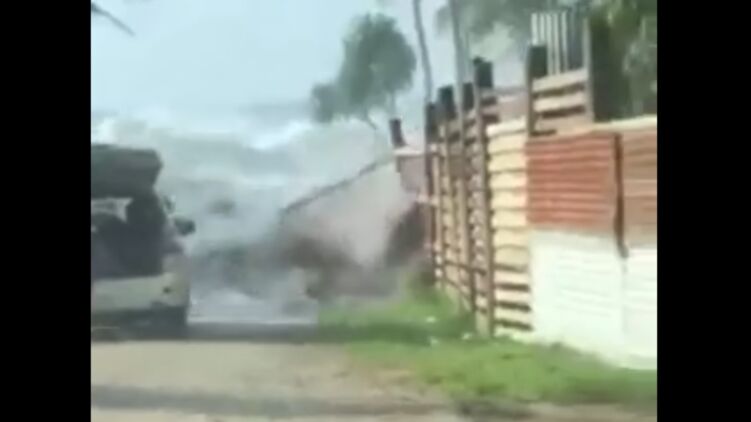 В сети появились видео, как извержение вулкана в Тихом океане вызвало волну цунами в Японии