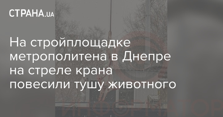 На стройплощадке метрополитена в Днепре на стреле крана повесили тушу животного