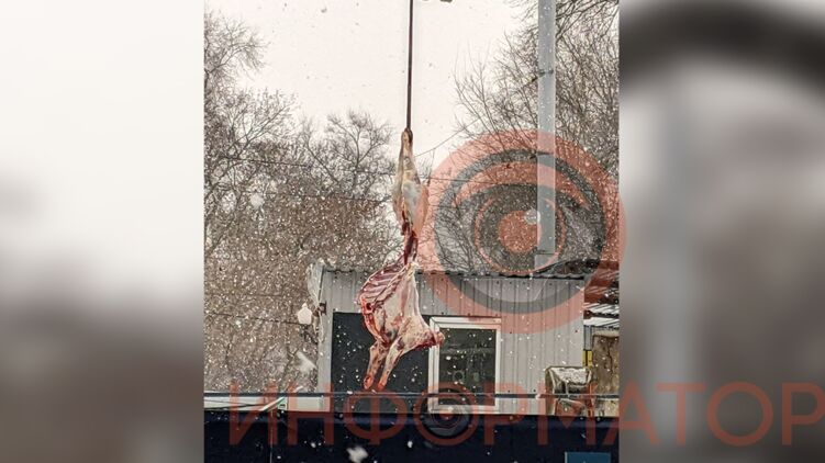 Вчера, 28 января, жители города Днепра заметили на ковше экскаватора на стройплощадке Днепровского метрополитена подвешенную разделанную тушу животного. Очевидцам не известно, кто и с какой целью это сделал.