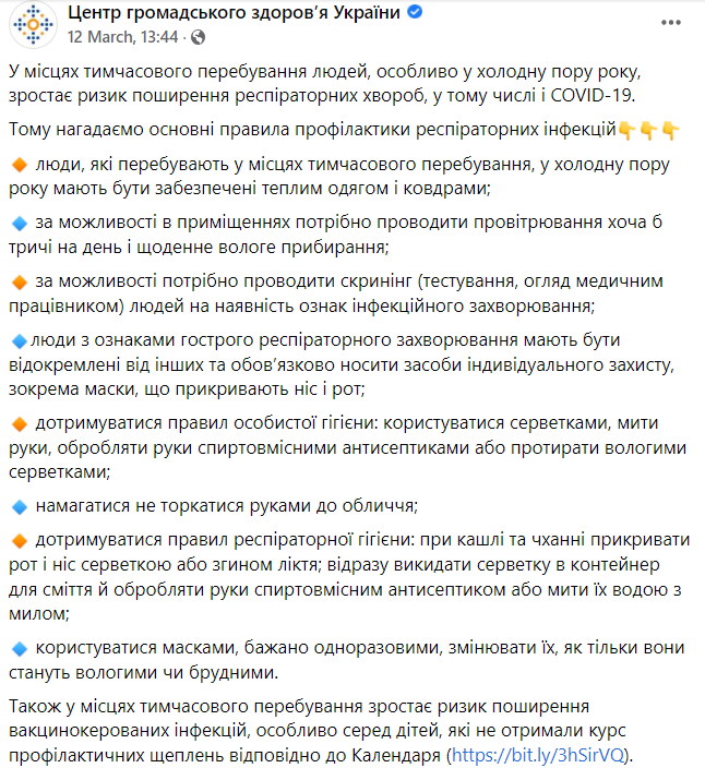 По возможности следует пользоваться медицинскими масками и менять их по мере необходимости. Кроме того, в закрытом пространстве повышается риск заражения респираторными заболеваниями у детей. Чтобы не допустить этого, медики советуют украинцам проверить соблюдение календаря прививок у ребенка и по возможности пройти вакцинацию.