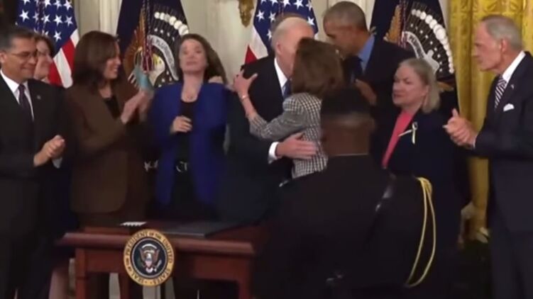 6 апреля спикер присутствовала на подписании Байденом закона о финансовой реформе почтовой службы США. Все присутствующие находились в помещении без медицинских масок, причем Пелоси и Байден обнимались и целовались.