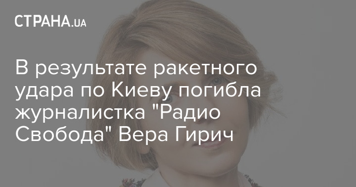 В результате ракетного удара по Киеву погибла журналистка "Радио Свобода" Вера Гирич