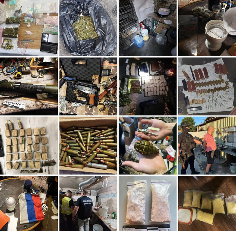 Также желающие могли приобрести у членов группы оружие и боеприпасы. У фигурантов проведено 23 санкционированных обыска. Изъято лабораторное оборудование для изготовления психотропных веществ, около 1 кг амфетамина, каннабиса, прекурсоры, электронные весы, деньги. Также в ходе обысков изъято большое количество патронов разного калибра, автоматическое оружие типа АКС-74У, АК-47, гранаты типа Ф-1, РГД-5, РГН, средства подрыва типов УЗРГМ-2, УДЗ, пиротехнические средства, коммунистические знаки, флаг Российской Федерации и флаг с свастикой.