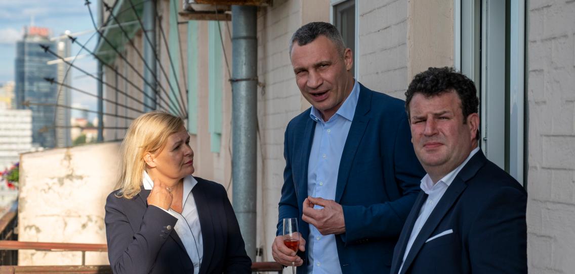 Немцев возмутило фото, где министр внутренних дел Нэнси Файзер вместе с министром труда Хубертусом Хайлем, мэром Киева Виталием Кличко и послом Германии Анкой Фельдхузен смеются и пьют шампанское на балконе резиденции посла.