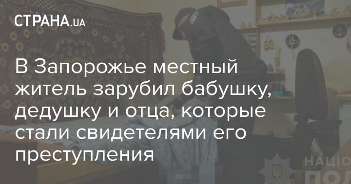 В Запорожье местный житель зарубил бабушку, дедушку и отца, которые стали свидетелями его преступления