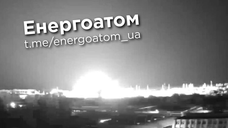 Президент Украины Владимир Зеленский опубликовал видео с моментом прилёта по промышленной зоне Южноукраинской АЭС.