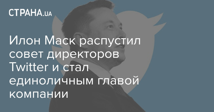 Новый владелец Twitter Илон Маск распустил совет директоров Twitter и стал единоличным главой компании.