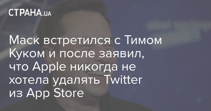 Американский бизнесмен Илон Маск провел встречу с главой Apple Тимом Куком и после заявил, что Apple никогда не хотела удалять Twitter из App Store.
