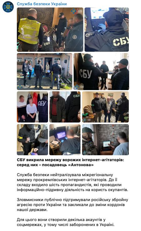 СБУ задержала в Киеве ведущего инженера "Антонова" за репосты в соцсетях