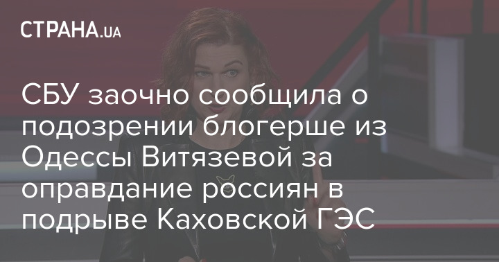 СБУ заочно сообщила о подозрении блогерше из Одессы Витязевой за оправдание россиян в подрыве Каховской ГЭС