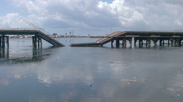 Появился фоторепортаж с разрушенного моста, ранее соединявшего посёлок Богородичное и Святогорск на севере Донецкой области.
