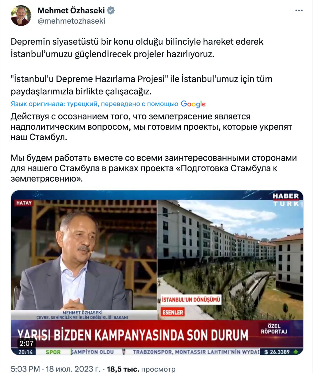 Власти страны уже начали подготовку Стамбула к возможному инциденту, сообщил министр экологии и градостроительства Мехмет Озхасеки.