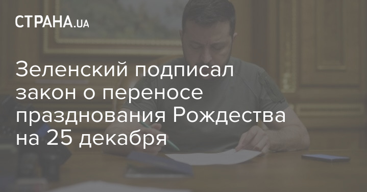 Президент Украины Владимир Зеленский подписал закон о переносе празднования Рождества на 25 декабря.