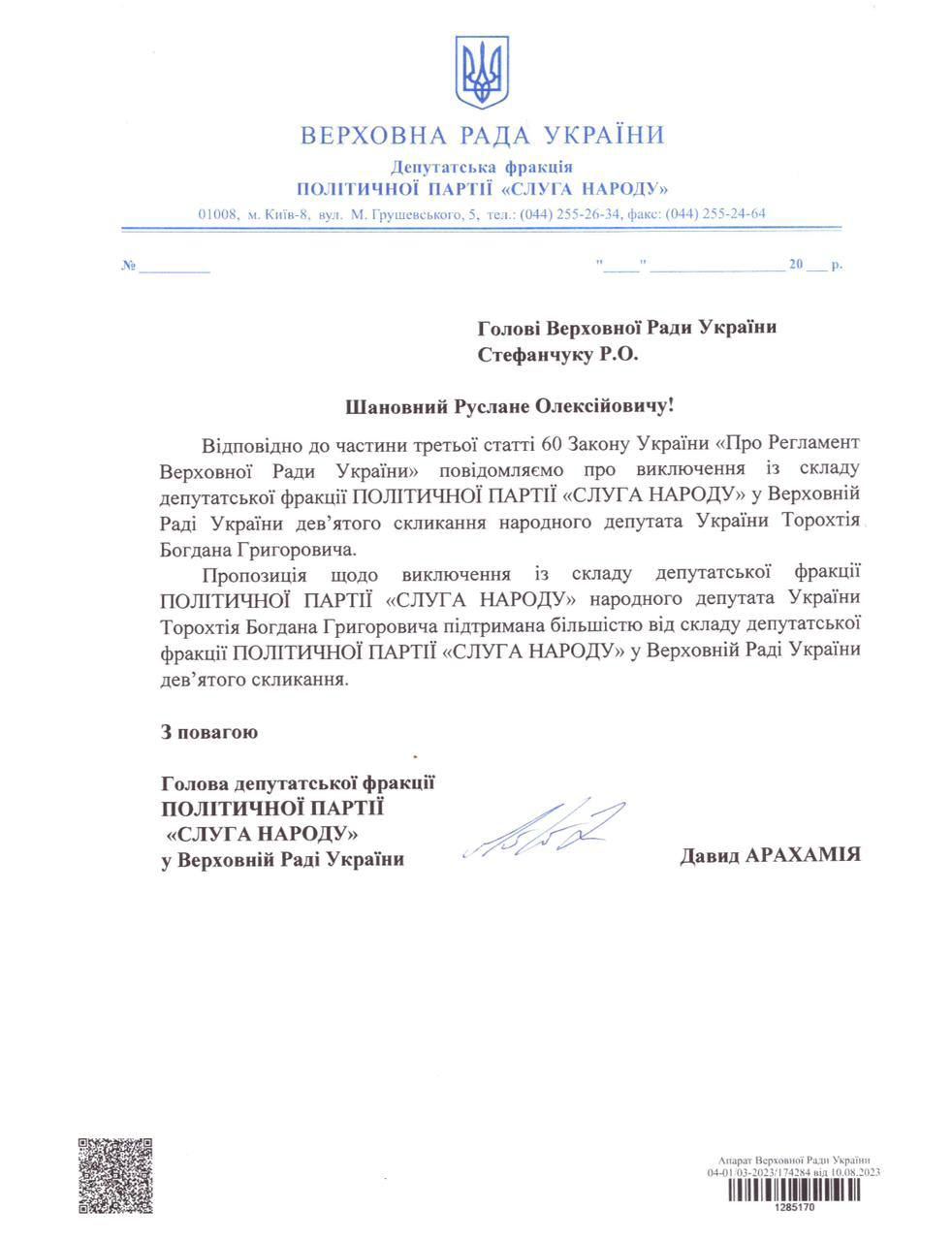 Об этом сообщил глава фракции "Слуга народа" Давид Арахамия.