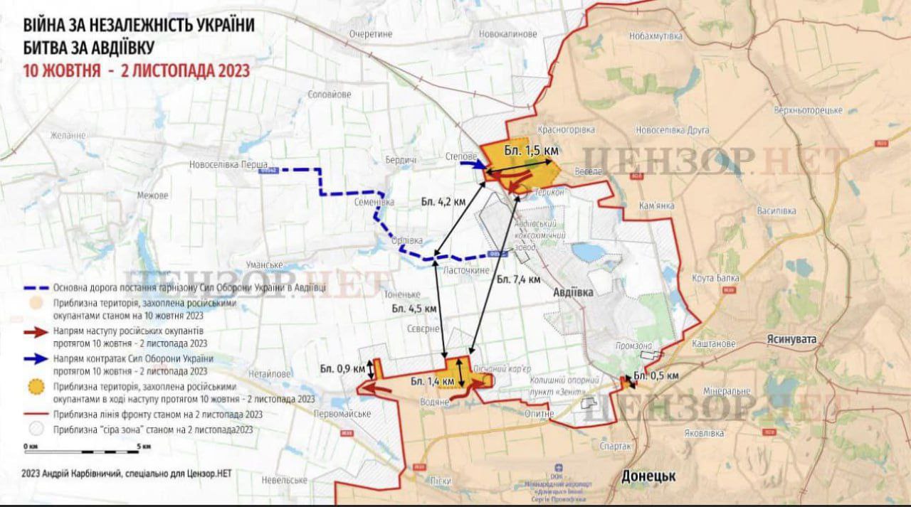 "Российская пехота закрепилась за железной дорогой, накапливается для расширения плацдарма и для атаки на Авдеевский коксохимический завод – ключевой комплекс сооружений, контролирующий подходы к Авдеевке. Захват завода будет означать постепенное, но неотвратимое складывание обороны и захват города", - пишет Бутусов.