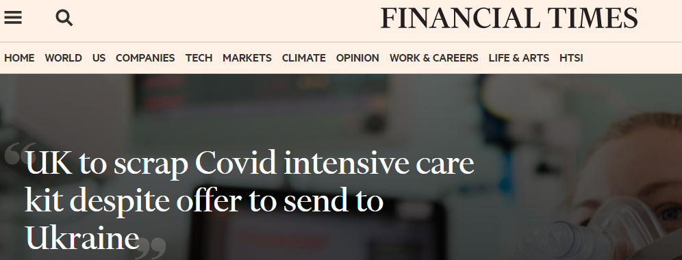 В Британии могут утилизировать медоборудование для лечения COVID-19 вместо его отправки в Украину - FT