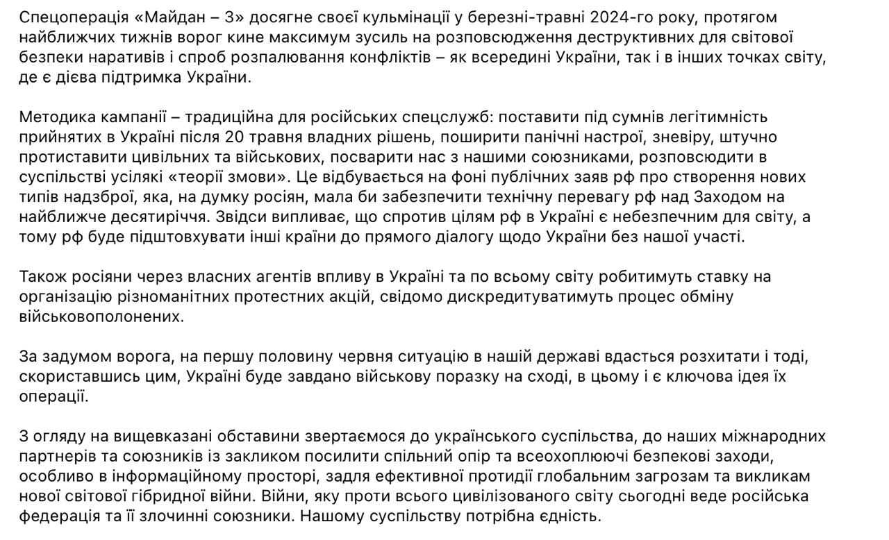 По его данным, кампания "Майдан-3" должна достичь кульминации в марте-мае 2024 года.
