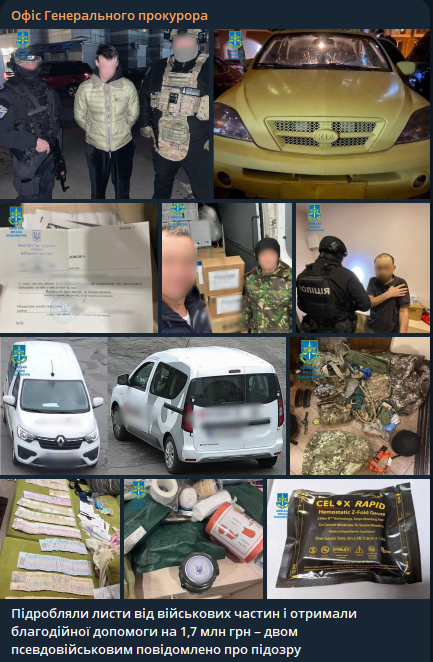 По данным следствия, не связанные с ВСУ граждане отправляли письма от имени воинских частей благотворительным фондам и волонтерским организациям с просьбой оказать гуманитарную помощь. Затем подозреваемые, представляясь членами военных подразделений и используя военную форму и печати, якобы принадлежащие воинским частям, приезжали на встречу к представителям фондов и получали от них тактическое снаряжение, медицинское оборудование и аптечки, которые потом продавали по своему усмотрению.