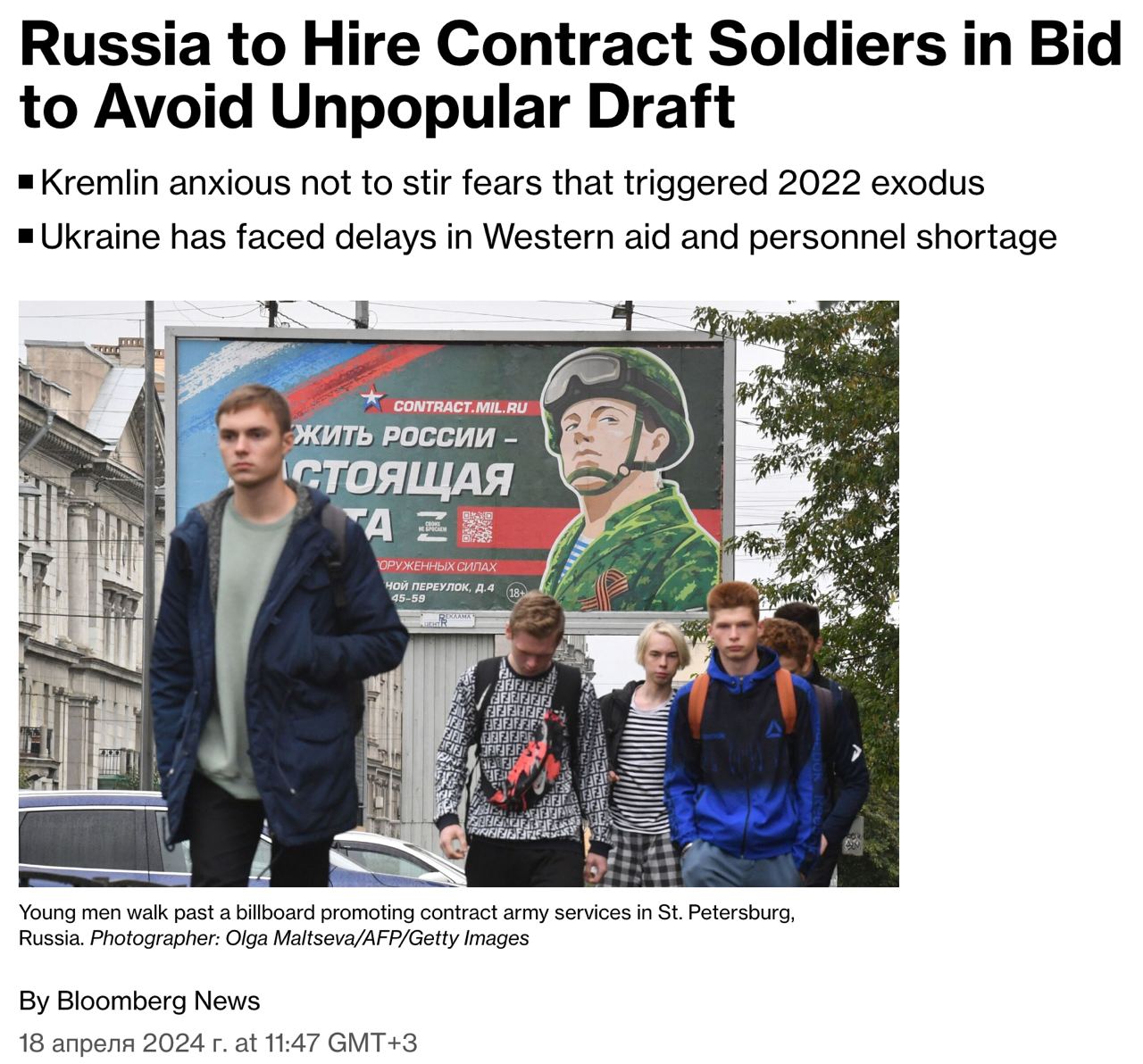 Также РФ надеется, что некоторые из 150 тыс. весенних призывников подпишут контракт и после четырех месяцев службы согласятся пойти на войну. Все большее число призывников жалуются на значительное психологическое, а в некоторых случаях и физическое давление. Такие контракты официально рассчитаны на один год, но могут быть аннулированы Минобороны на время военной мобилизации.