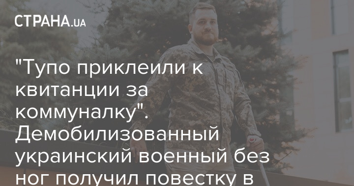 "Тупо приклеили к квитанции за коммуналку". Демобилизованный украинский военный без ног получил повестку в ТЦК