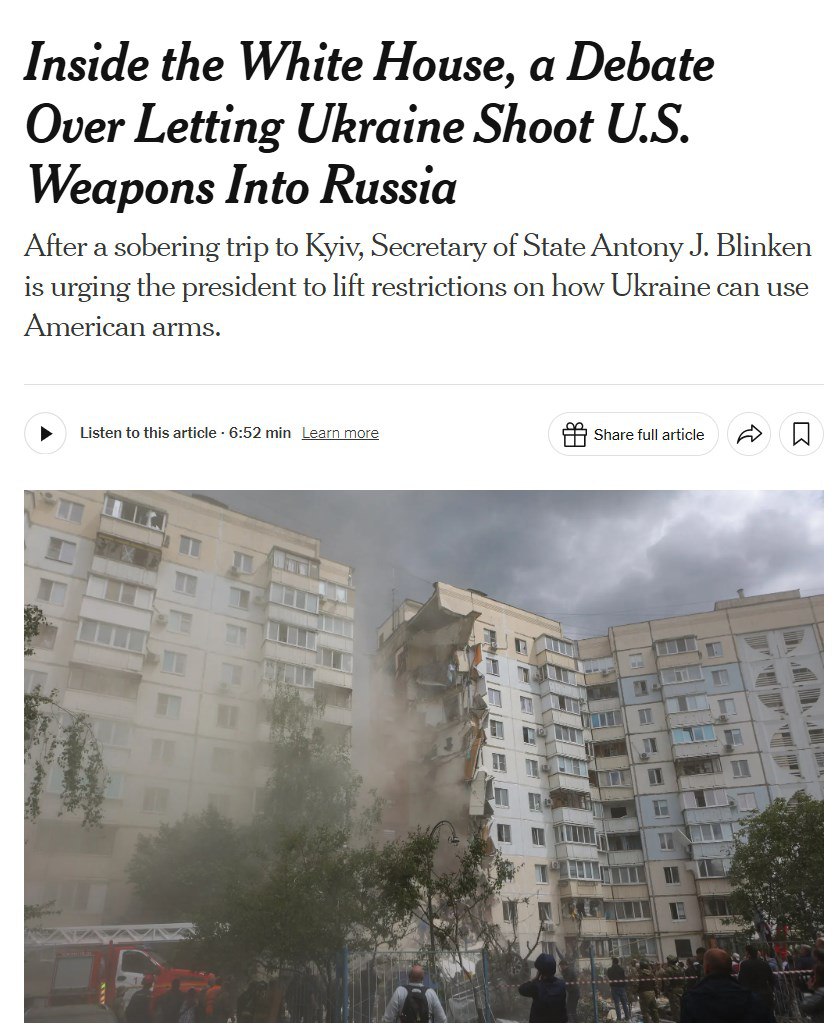 "Под руководством Госдепартамента сейчас в администрации ведутся энергичные дебаты по поводу ослабления запрета, позволяющего украинцам наносить удары по ракетным и артиллерийским стартовым площадкам прямо за границей с Россией", - говорится в статье.