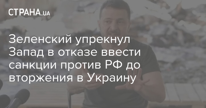 Владимир Зеленский упрекнул страны Запада за их отказ ввести санкции против Москвы ещё до полномасштабного российского вторжения.
