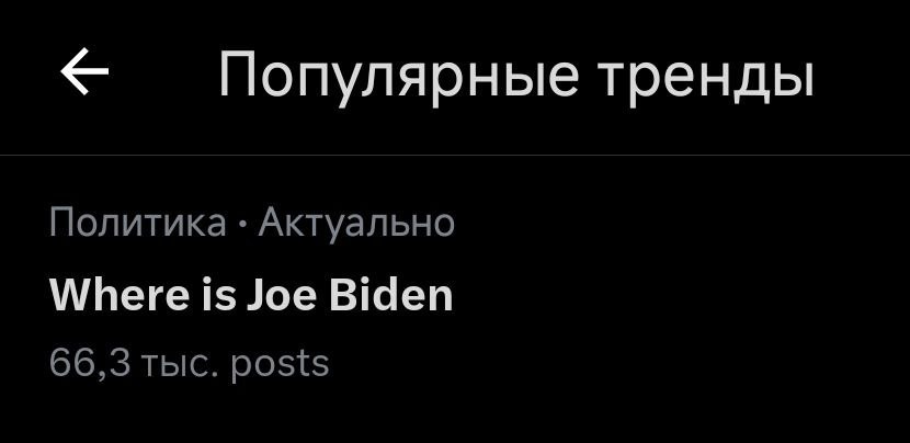 Запрос "Где Джо Байден?" вышел на первое место среди пользователей соцсети Х в Соединённых Штатах в категории "Политика".
