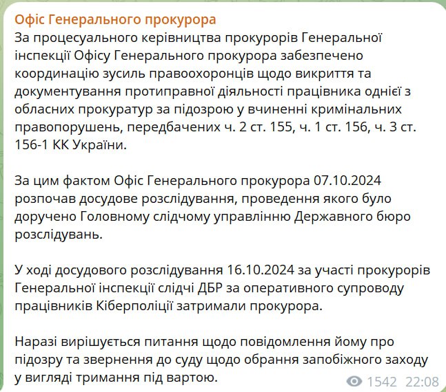 Об этом сообщает пресс-служба Офиса генерального прокурора Украины в своем телеграм-канале.