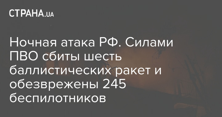 Ночная атака РФ. Силами ПВО сбиты шесть баллистических ракет и обезврежены 245 беспилотников